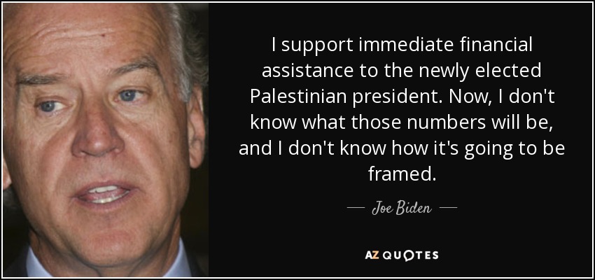 I support immediate financial assistance to the newly elected Palestinian president. Now, I don't know what those numbers will be, and I don't know how it's going to be framed.