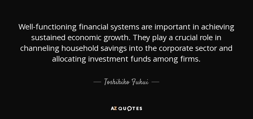 Well-functioning financial systems are important in achieving sustained economic growth. They play a crucial role in channeling household savings into the corporate sector and allocating investment funds among firms.