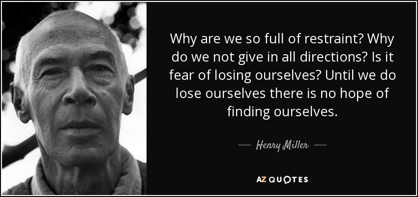 Why are we so full of restraint? Why do we not give in all directions? Is it fear of losing ourselves? Until we do lose ourselves there is no hope of finding ourselves.