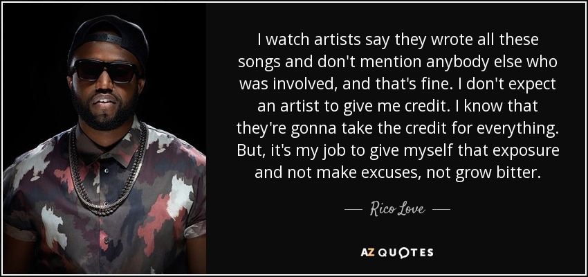 I watch artists say they wrote all these songs and don't mention anybody else who was involved, and that's fine. I don't expect an artist to give me credit. I know that they're gonna take the credit for everything. But, it's my job to give myself that exposure and not make excuses, not grow bitter.