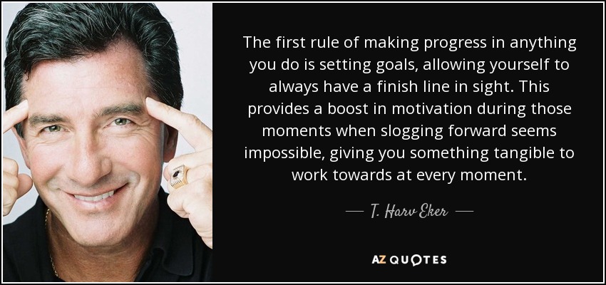 The first rule of making progress in anything you do is setting goals, allowing yourself to always have a finish line in sight. This provides a boost in motivation during those moments when slogging forward seems impossible, giving you something tangible to work towards at every moment.