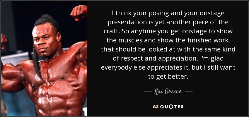 I think your posing and your onstage presentation is yet another piece of the craft. So anytime you get onstage to show the muscles and show the finished work, that should be looked at with the same kind of respect and appreciation. I'm glad everybody else appreciates it, but I still want to get better.