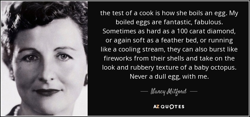 the test of a cook is how she boils an egg. My boiled eggs are fantastic, fabulous. Sometimes as hard as a 100 carat diamond, or again soft as a feather bed, or running like a cooling stream, they can also burst like fireworks from their shells and take on the look and rubbery texture of a baby octopus. Never a dull egg, with me.