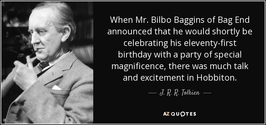 When Mr. Bilbo Baggins of Bag End announced that he would shortly be celebrating his eleventy-first birthday with a party of special magnificence, there was much talk and excitement in Hobbiton.