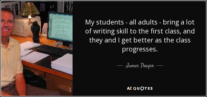 My students - all adults - bring a lot of writing skill to the first class, and they and I get better as the class progresses.