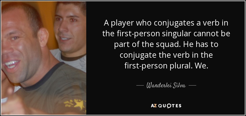 A player who conjugates a verb in the first-person singular cannot be part of the squad. He has to conjugate the verb in the first-person plural. We.