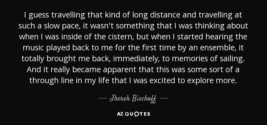 I guess travelling that kind of long distance and travelling at such a slow pace, it wasn't something that I was thinking about when I was inside of the cistern, but when I started hearing the music played back to me for the first time by an ensemble, it totally brought me back, immediately, to memories of sailing. And it really became apparent that this was some sort of a through line in my life that I was excited to explore more.