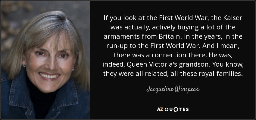 If you look at the First World War, the Kaiser was actually, actively buying a lot of the armaments from Britain! in the years, in the run-up to the First World War. And I mean, there was a connection there. He was, indeed, Queen Victoria's grandson. You know, they were all related, all these royal families.