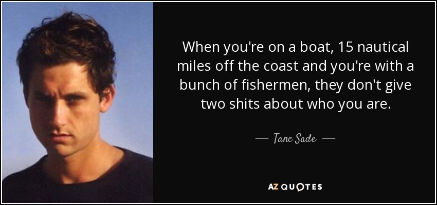 When you're on a boat, 15 nautical miles off the coast and you're with a bunch of fishermen, they don't give two shits about who you are.