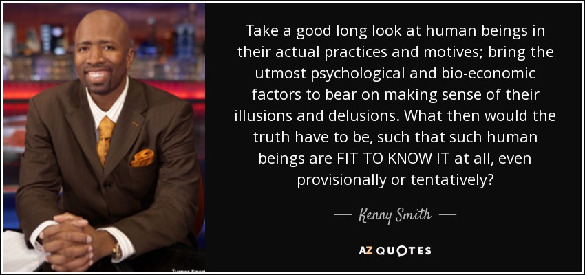 Take a good long look at human beings in their actual practices and motives; bring the utmost psychological and bio-economic factors to bear on making sense of their illusions and delusions. What then would the truth have to be, such that such human beings are FIT TO KNOW IT at all, even provisionally or tentatively?