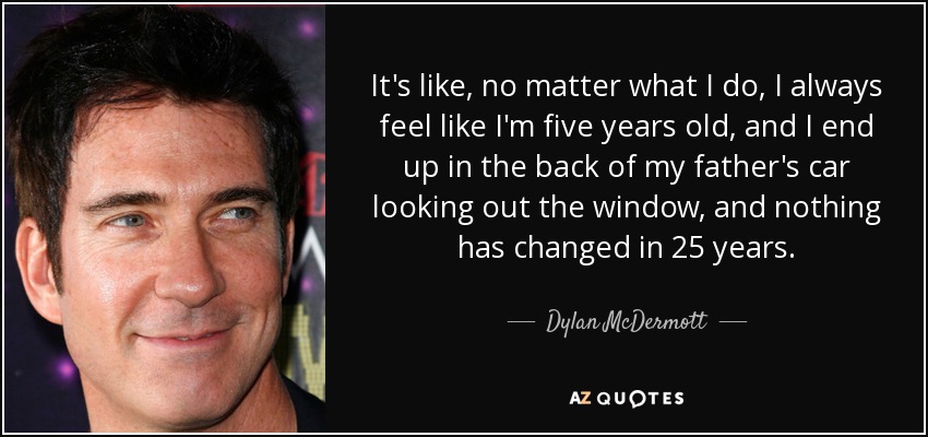 It's like, no matter what I do, I always feel like I'm five years old, and I end up in the back of my father's car looking out the window, and nothing has changed in 25 years.