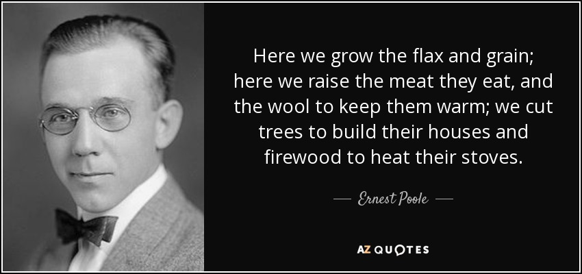 Here we grow the flax and grain; here we raise the meat they eat, and the wool to keep them warm; we cut trees to build their houses and firewood to heat their stoves.