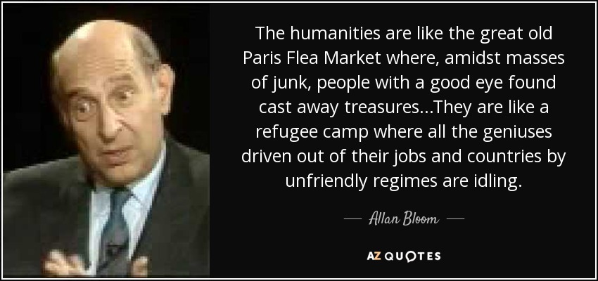 The humanities are like the great old Paris Flea Market where, amidst masses of junk, people with a good eye found cast away treasures...They are like a refugee camp where all the geniuses driven out of their jobs and countries by unfriendly regimes are idling.