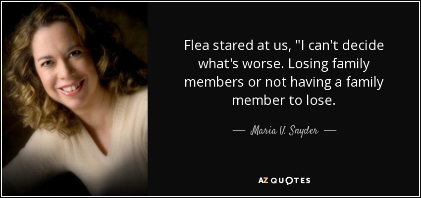 Flea stared at us, "I can't decide what's worse. Losing family members or not having a family member to lose.