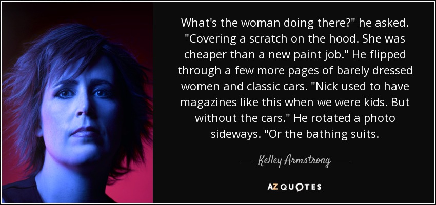 What's the woman doing there?" he asked. "Covering a scratch on the hood. She was cheaper than a new paint job." He flipped through a few more pages of barely dressed women and classic cars. "Nick used to have magazines like this when we were kids. But without the cars." He rotated a photo sideways. "Or the bathing suits.