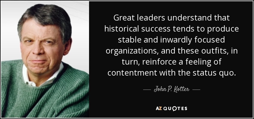 Great leaders understand that historical success tends to produce stable and inwardly focused organizations, and these outfits, in turn, reinforce a feeling of contentment with the status quo.