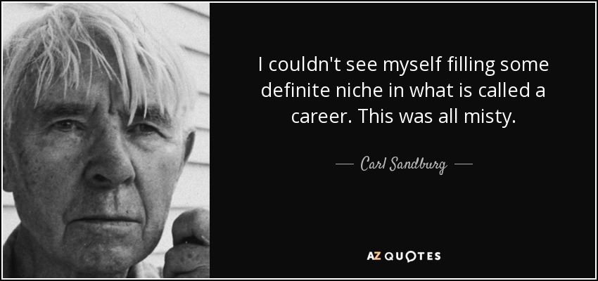 I couldn't see myself filling some definite niche in what is called a career. This was all misty.