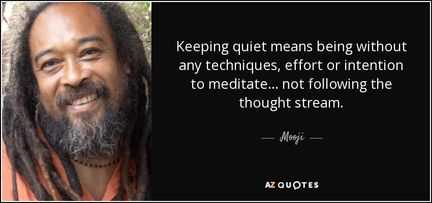 Keeping quiet means being without any techniques, effort or intention to meditate... not following the thought stream.