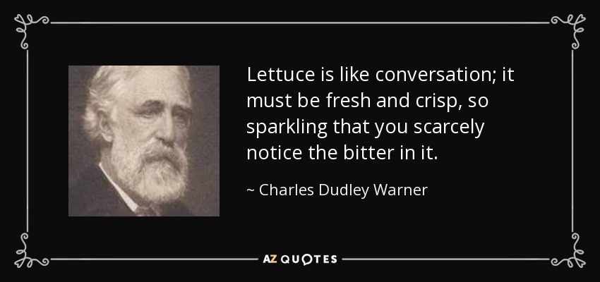 Lettuce is like conversation; it must be fresh and crisp, so sparkling that you scarcely notice the bitter in it.