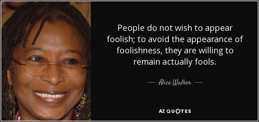 People do not wish to appear foolish; to avoid the appearance of foolishness, they are willing to remain actually fools.