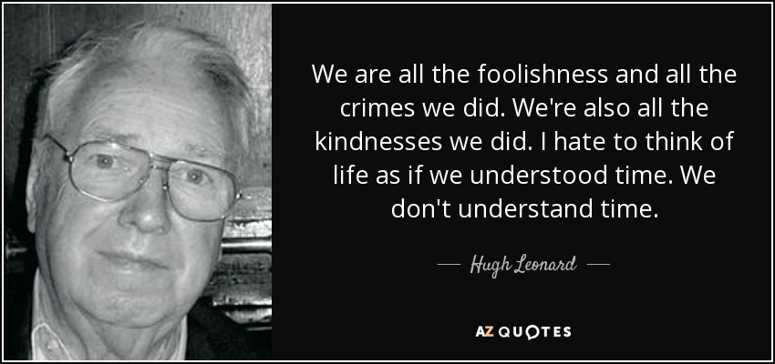 We are all the foolishness and all the crimes we did. We're also all the kindnesses we did. I hate to think of life as if we understood time. We don't understand time.