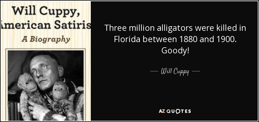 Three million alligators were killed in Florida between 1880 and 1900. Goody!