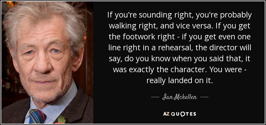 If you're sounding right, you're probably walking right, and vice versa. If you get the footwork right - if you get even one line right in a rehearsal, the director will say, do you know when you said that, it was exactly the character. You were - really landed on it.