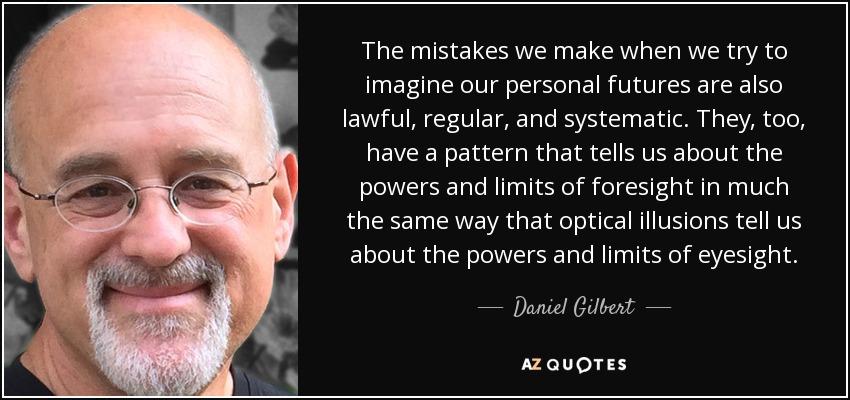 The mistakes we make when we try to imagine our personal futures are also lawful, regular, and systematic. They, too, have a pattern that tells us about the powers and limits of foresight in much the same way that optical illusions tell us about the powers and limits of eyesight.