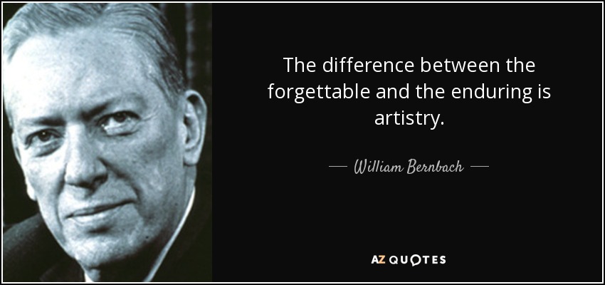 The difference between the forgettable and the enduring is artistry.