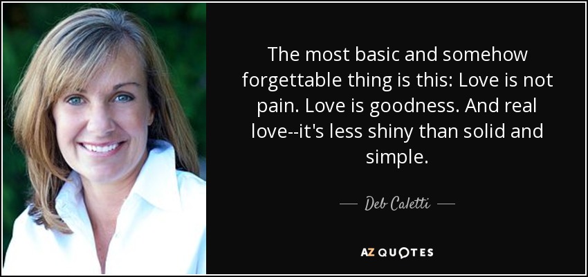 The most basic and somehow forgettable thing is this: Love is not pain. Love is goodness. And real love--it's less shiny than solid and simple.