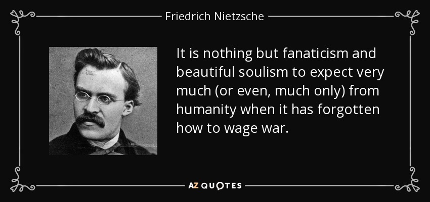 It is nothing but fanaticism and beautiful soulism to expect very much (or even, much only) from humanity when it has forgotten how to wage war.