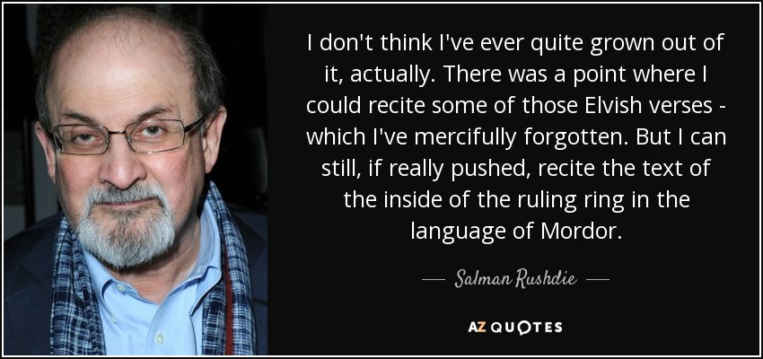 I don't think I've ever quite grown out of it, actually. There was a point where I could recite some of those Elvish verses - which I've mercifully forgotten. But I can still, if really pushed, recite the text of the inside of the ruling ring in the language of Mordor.