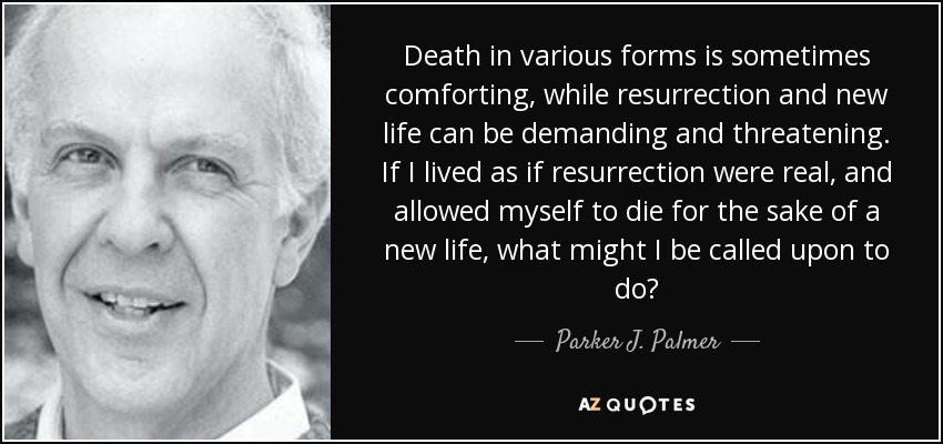 Death in various forms is sometimes comforting, while resurrection and new life can be demanding and threatening. If I lived as if resurrection were real, and allowed myself to die for the sake of a new life, what might I be called upon to do?
