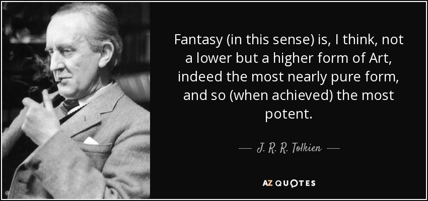Fantasy (in this sense) is, I think, not a lower but a higher form of Art, indeed the most nearly pure form, and so (when achieved) the most potent.