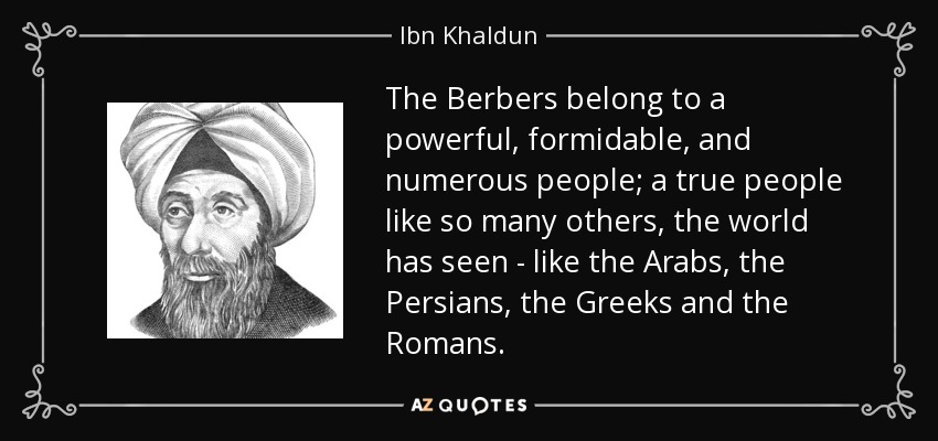 The Berbers belong to a powerful, formidable, and numerous people; a true people like so many others, the world has seen - like the Arabs, the Persians, the Greeks and the Romans.