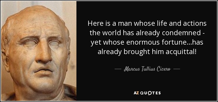 Here is a man whose life and actions the world has already condemned - yet whose enormous fortune...has already brought him acquittal!