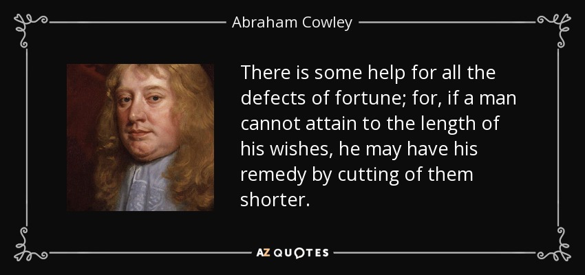 There is some help for all the defects of fortune; for, if a man cannot attain to the length of his wishes, he may have his remedy by cutting of them shorter.