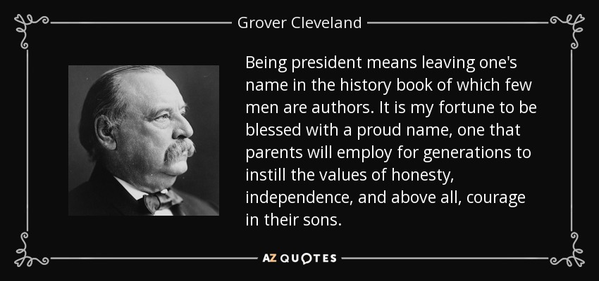 Being president means leaving one's name in the history book of which few men are authors. It is my fortune to be blessed with a proud name, one that parents will employ for generations to instill the values of honesty, independence, and above all, courage in their sons.