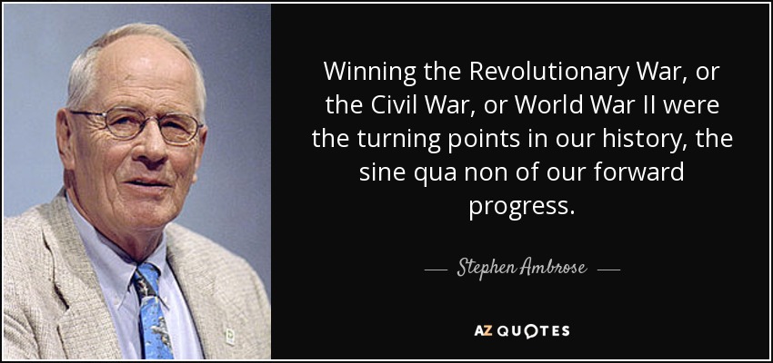 Winning the Revolutionary War, or the Civil War, or World War II were the turning points in our history, the sine qua non of our forward progress.