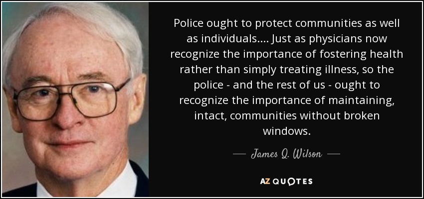 Police ought to protect communities as well as individuals.... Just as physicians now recognize the importance of fostering health rather than simply treating illness, so the police - and the rest of us - ought to recognize the importance of maintaining, intact, communities without broken windows.