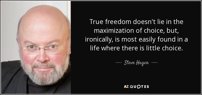 True freedom doesn't lie in the maximization of choice, but, ironically, is most easily found in a life where there is little choice.