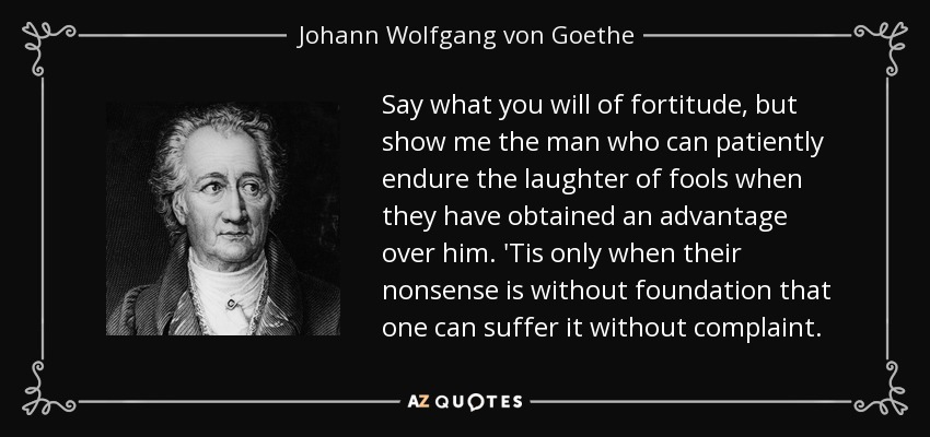 Say what you will of fortitude, but show me the man who can patiently endure the laughter of fools when they have obtained an advantage over him. 'Tis only when their nonsense is without foundation that one can suffer it without complaint.