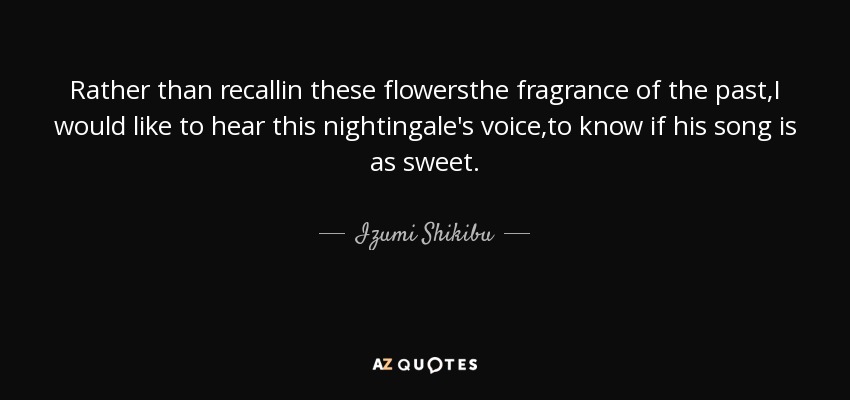 Rather than recallin these flowersthe fragrance of the past,I would like to hear this nightingale's voice,to know if his song is as sweet.