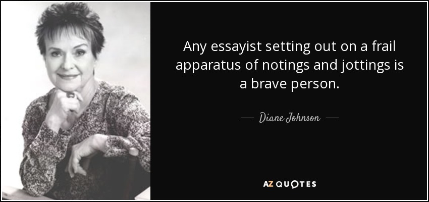 Any essayist setting out on a frail apparatus of notings and jottings is a brave person.