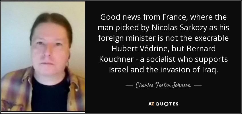 Good news from France, where the man picked by Nicolas Sarkozy as his foreign minister is not the execrable Hubert Védrine, but Bernard Kouchner - a socialist who supports Israel and the invasion of Iraq.