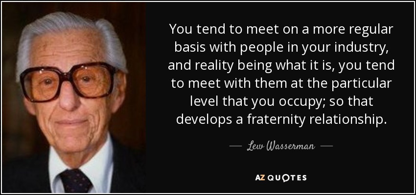 You tend to meet on a more regular basis with people in your industry, and reality being what it is, you tend to meet with them at the particular level that you occupy; so that develops a fraternity relationship.