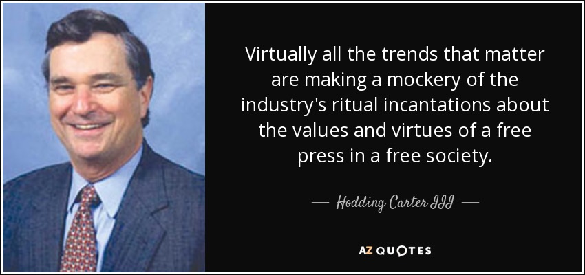 Virtually all the trends that matter are making a mockery of the industry's ritual incantations about the values and virtues of a free press in a free society.