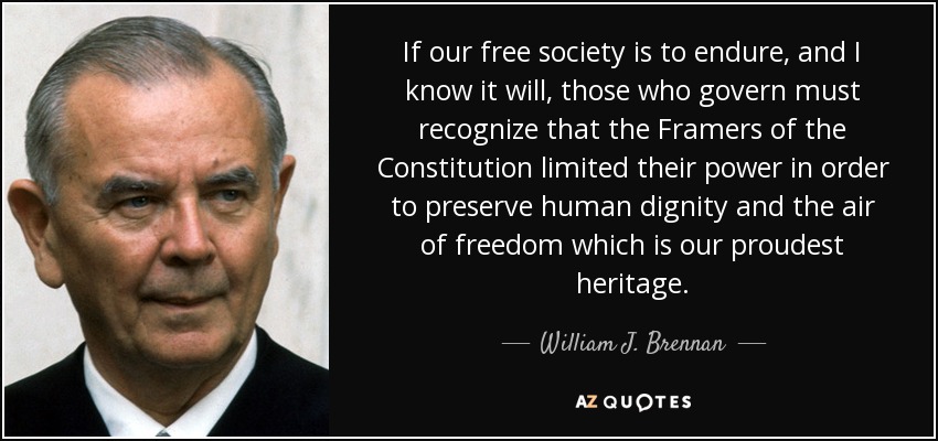 If our free society is to endure, and I know it will, those who govern must recognize that the Framers of the Constitution limited their power in order to preserve human dignity and the air of freedom which is our proudest heritage.
