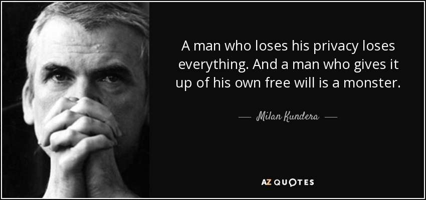 A man who loses his privacy loses everything. And a man who gives it up of his own free will is a monster.