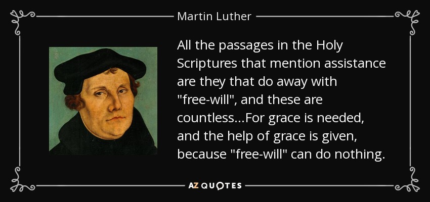 All the passages in the Holy Scriptures that mention assistance are they that do away with "free-will", and these are countless...For grace is needed, and the help of grace is given, because "free-will" can do nothing.